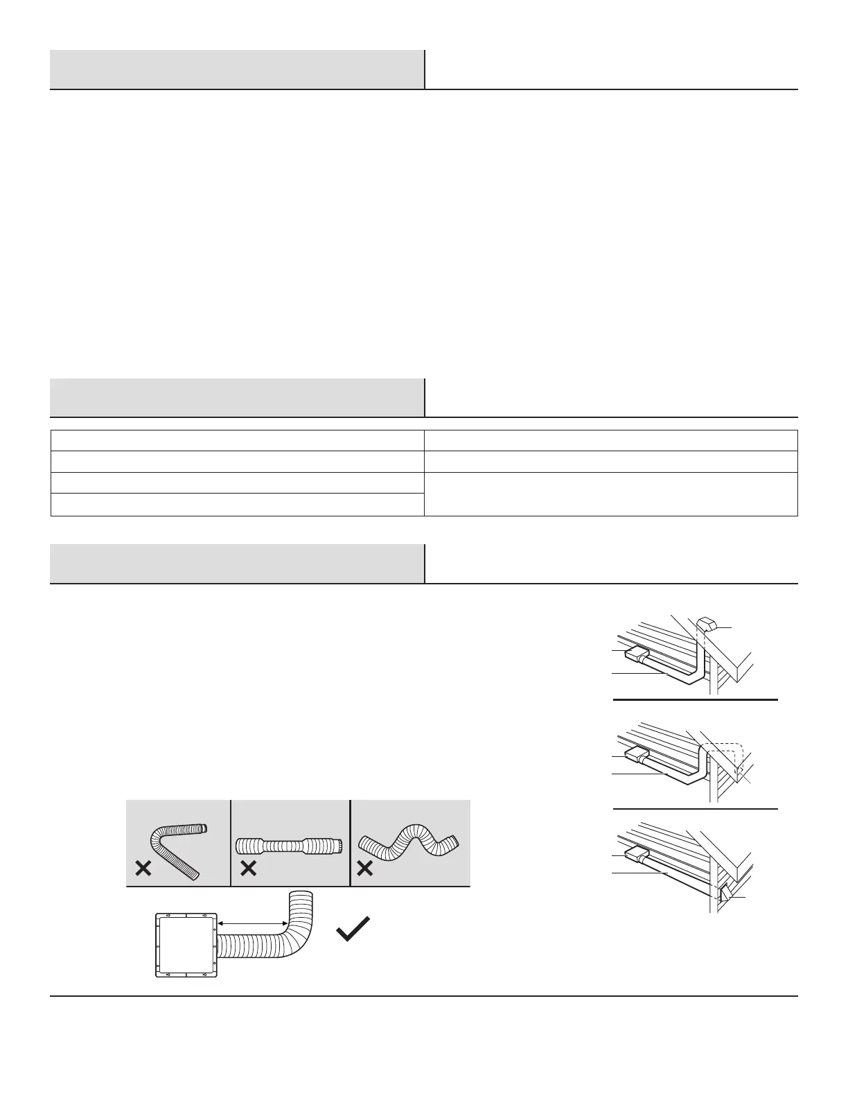 Do not install ventilation fan in areas where the duct work will require conguration as shown.