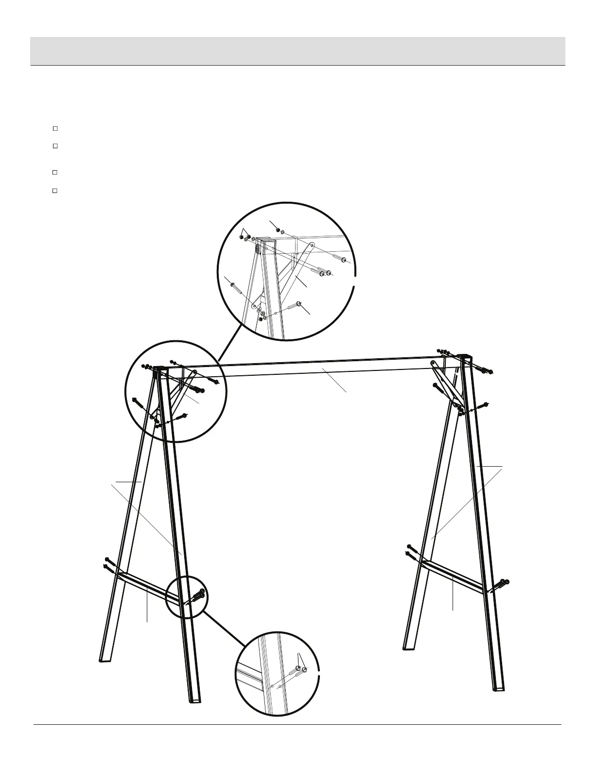 Attach two sets of the legs (B) to the top bar (A) using M8x100 combination bolts, washers and nuts (AA).
