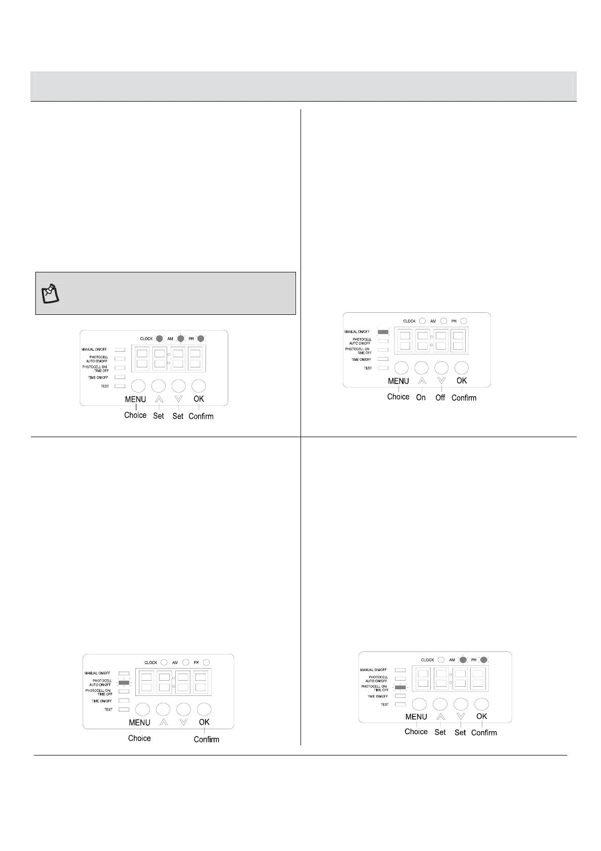 Setting PHOTOCELL ON / TIME OFF