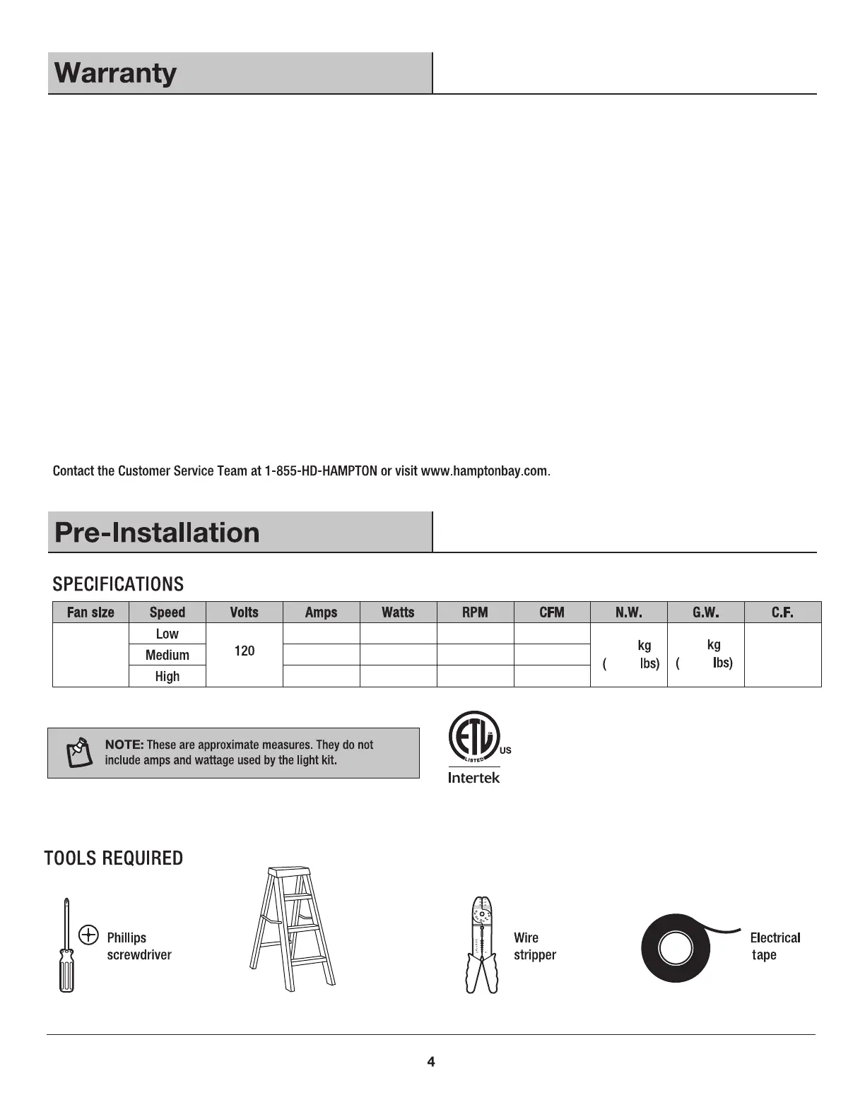 We also warrant that all other fan parts, excluding any glass or acrylic blades, to be free from defects in workmanship and material at the