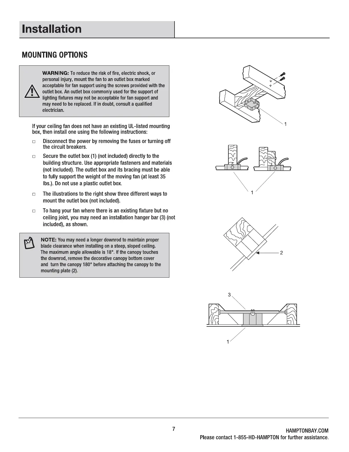 HAMPTON BAY EDELWEISS - Installation Process; Mounting Options and Ceiling Support