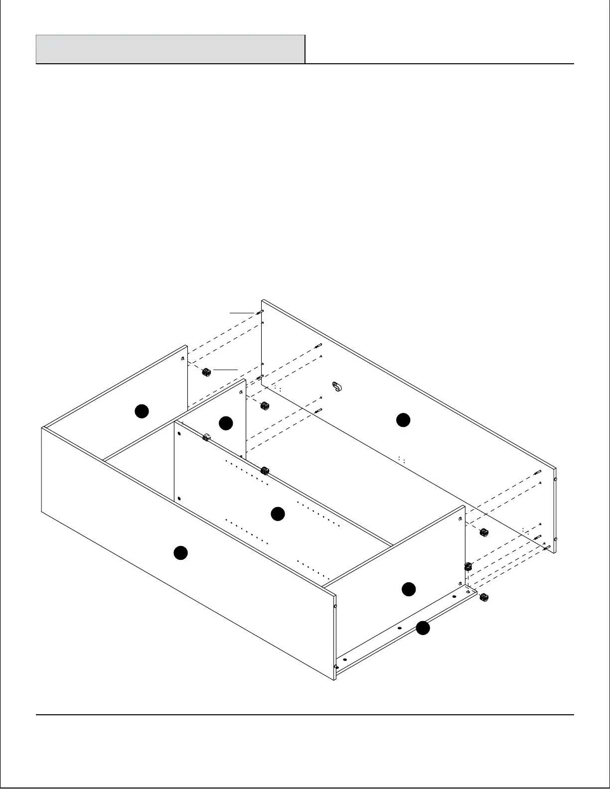 □ Connection top (A) , fixed shelf (F) , bottom (B) , bottom front rail (E) , and