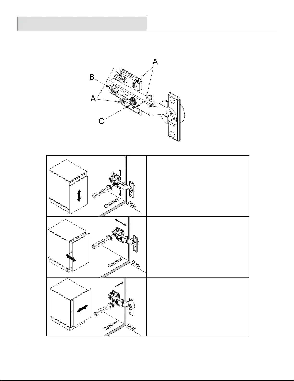 Turning the screw "C" on BOTH hinges on
