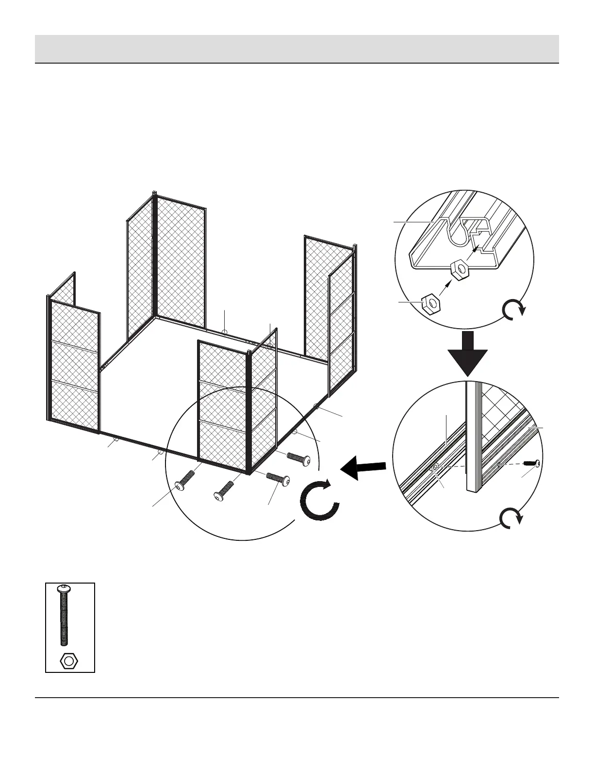 □ Position the lower slide rail assemblies (H and I) along the bottom perimeter of the gazebo assembly.