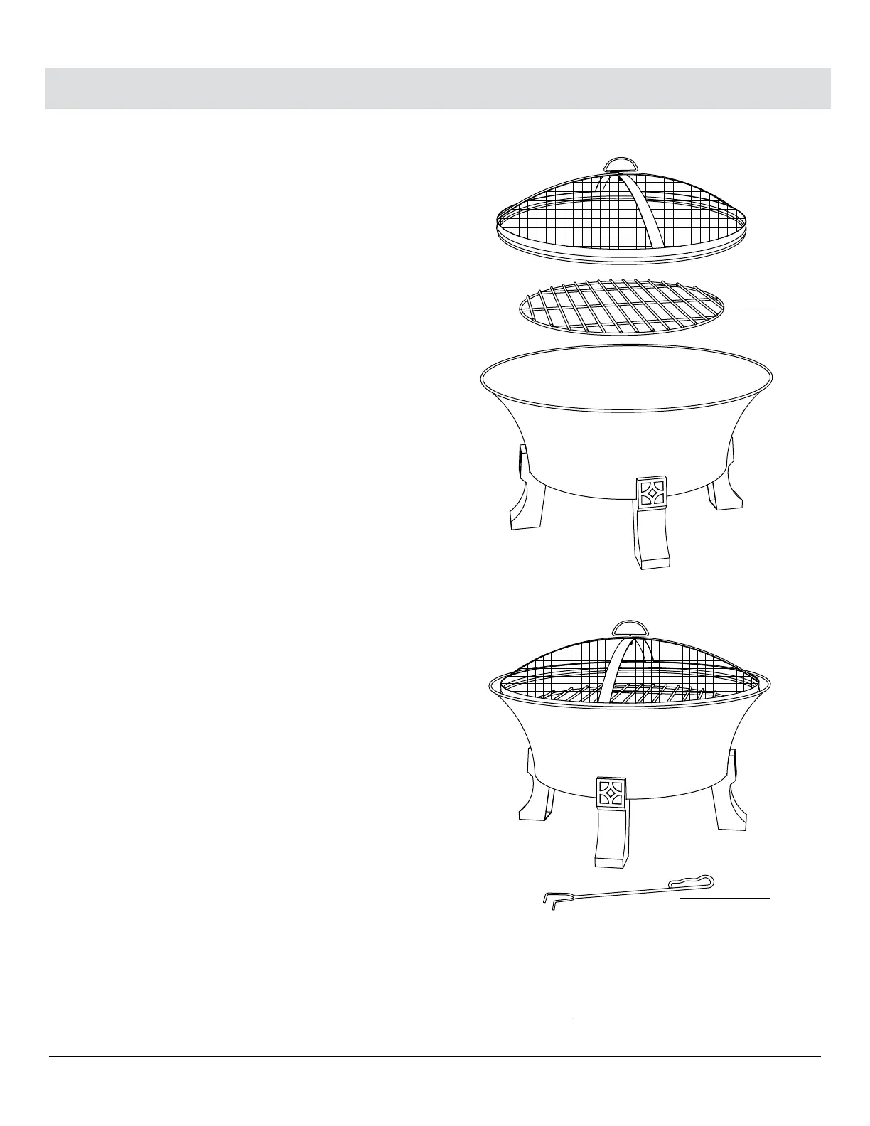 Place the wood grate (C) in the fire pit.