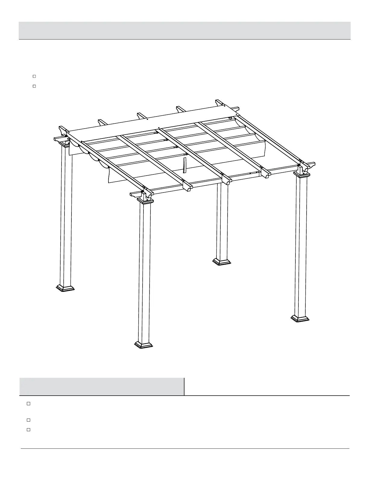 freezing conditions, the pergola needs to be stored in a dry, sheltered location.