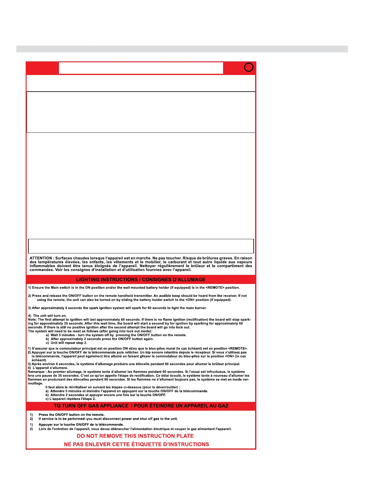 NE PAS UTILISER AVEC UN COMBUSTIBLE SOLIDE. FOYER AU GAZ À ÉVACUATION -