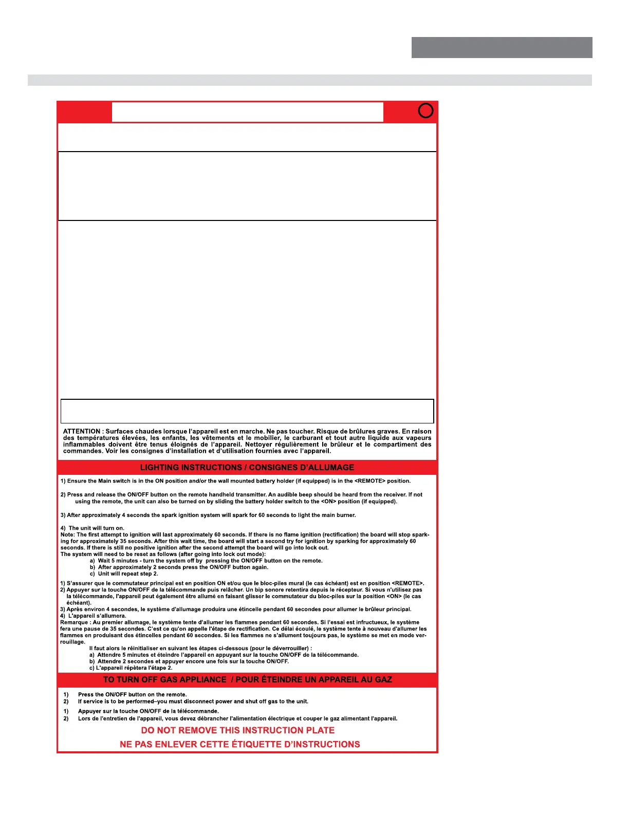 Ne tentez pas d’allumer la veilleuse manuellement.