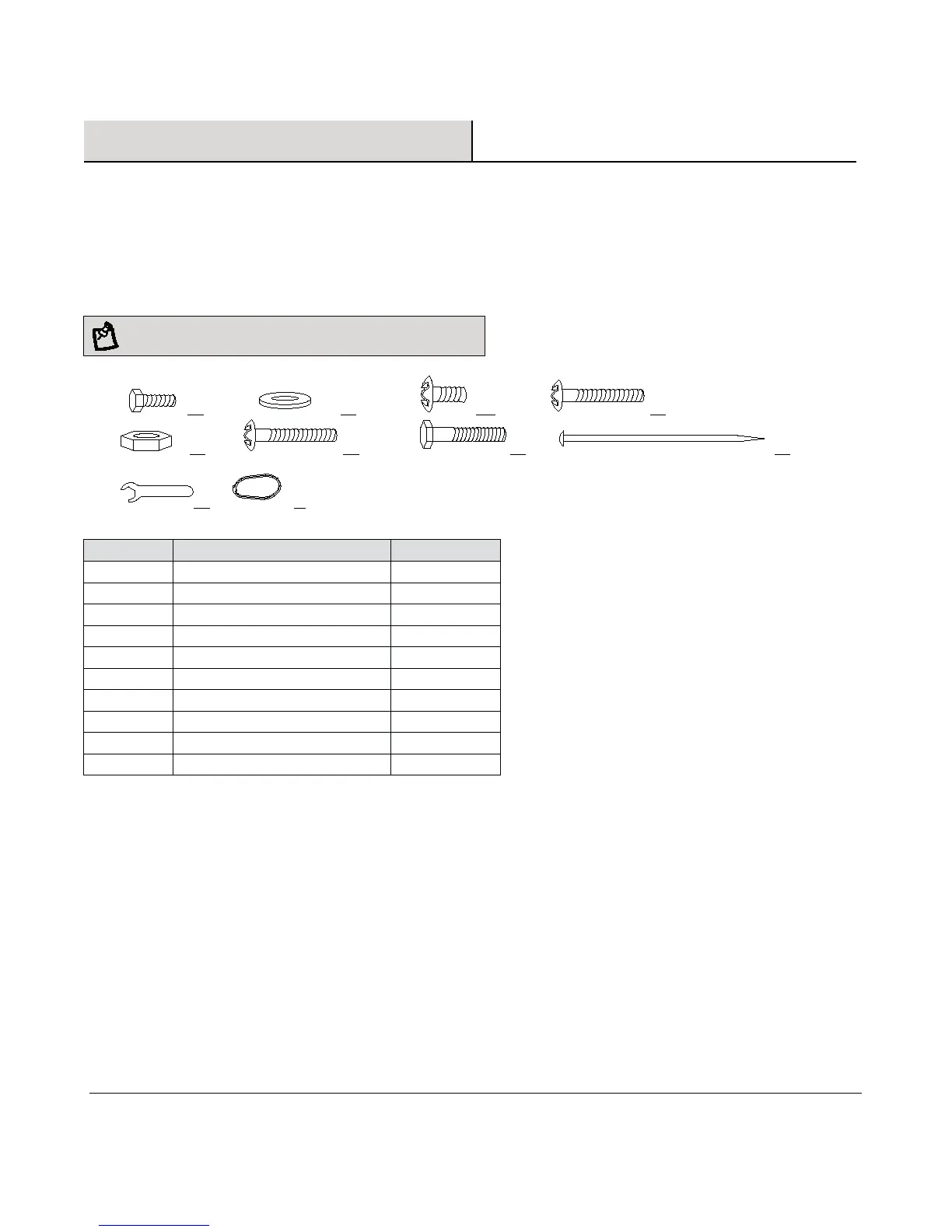 quincaillerie et de contenu d’emballage. S’il manque des pièces ou si elles sont endommagées, n’essayez pas de monter ce produit.