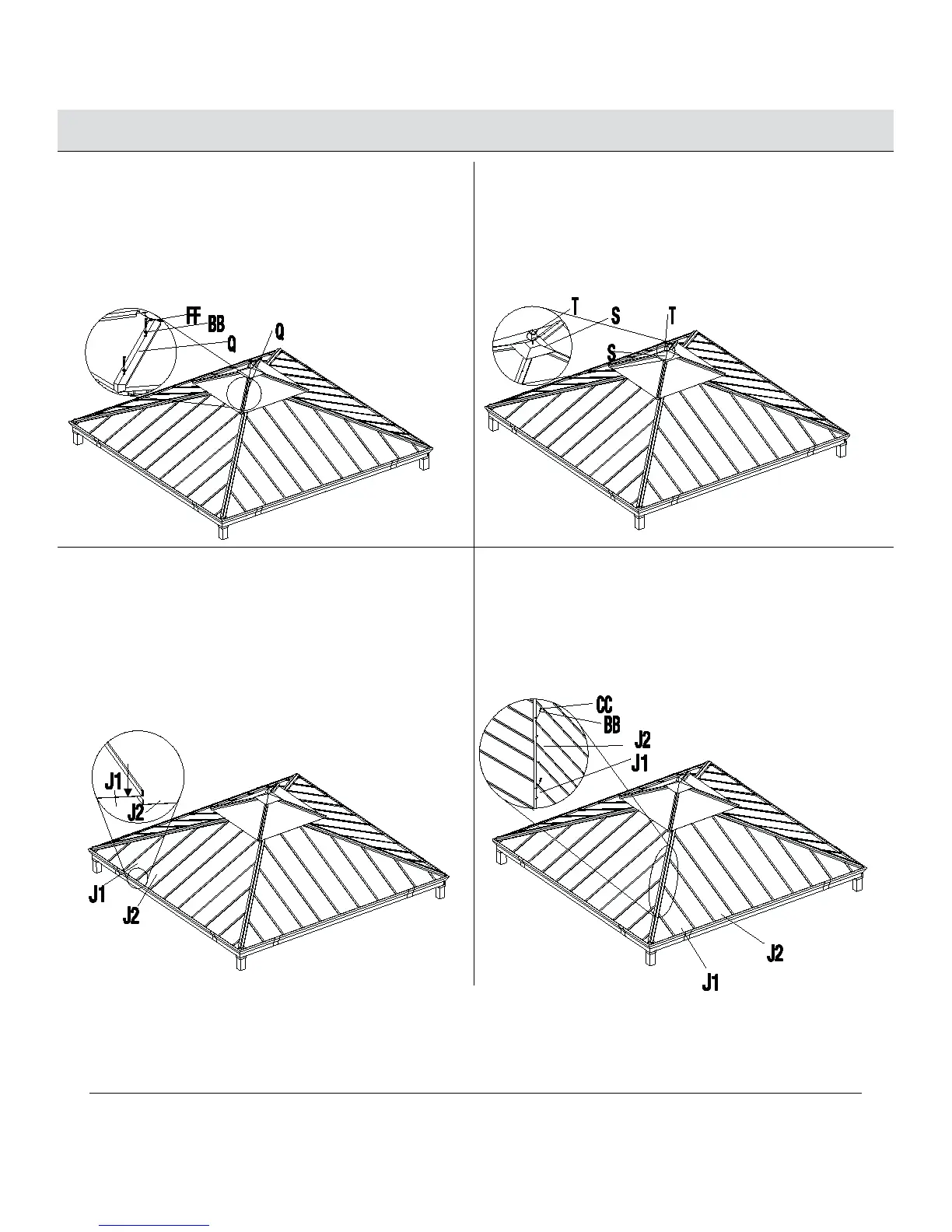 Ƒ Fixez la cime du petit toit (S) à la structure du petit toit.