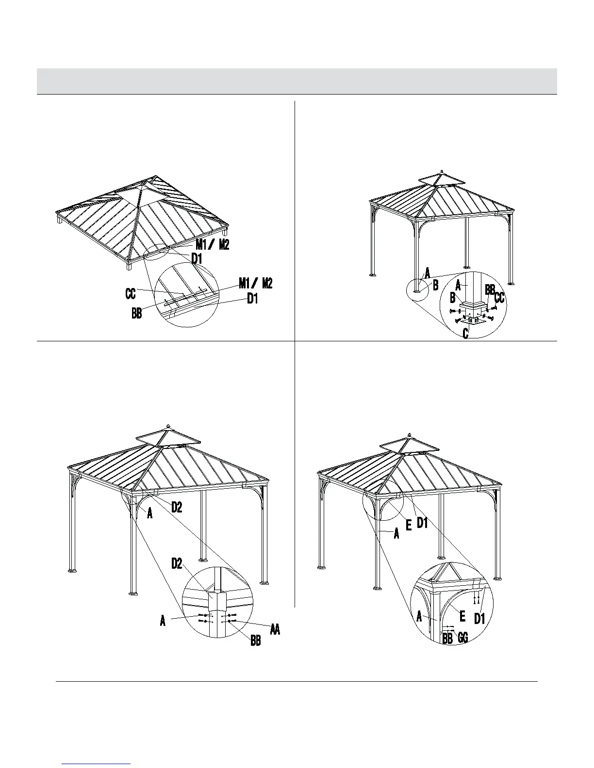 ornementales (D1) avec les boulons (GG) et les rondelles plates