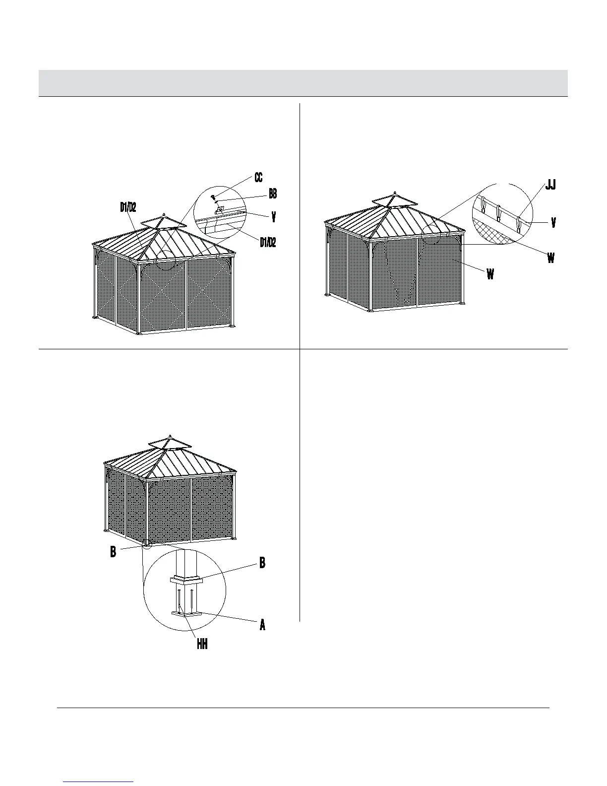 Ƒ Utilisez des crochets (JJ) pour attacher la moustiquaire (W) au