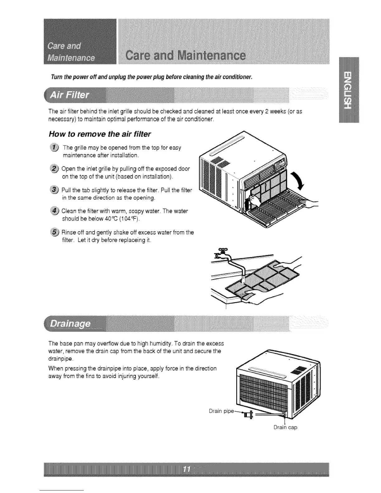 water, remove _,e drain cap from the back of the unit a_,dsecure the