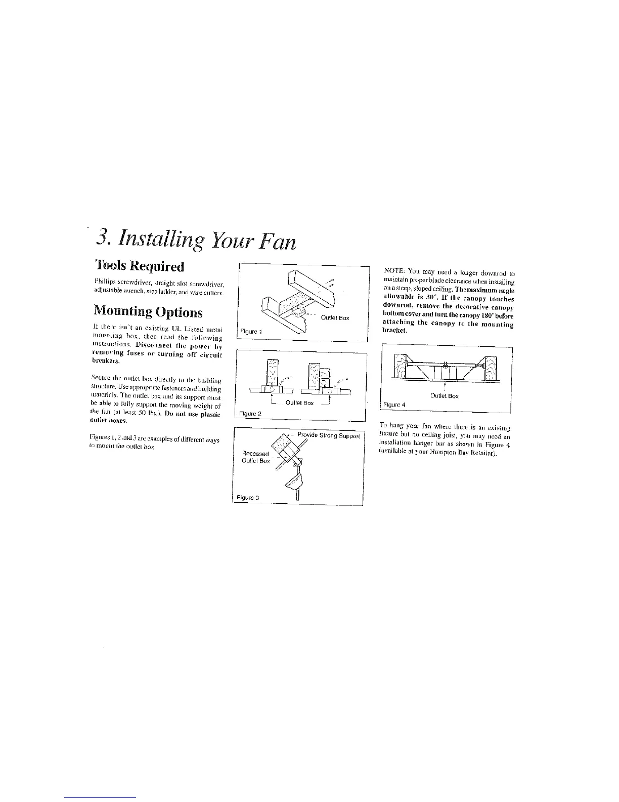 HAMPTON BAY Landmark Plus - Fan Installation Guide; Tools Required for Installation; Mounting Options and Requirements