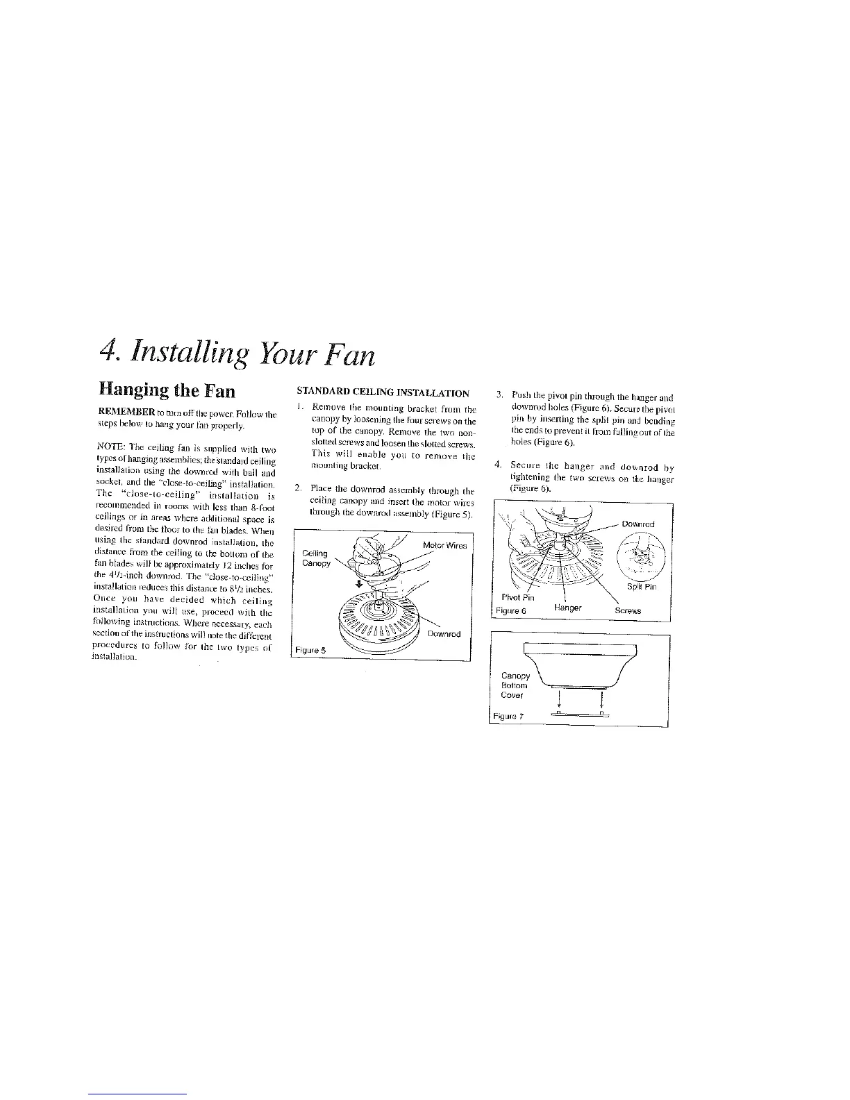 HAMPTON BAY Landmark Plus - Hanging the Fan Assembly; Standard Ceiling Installation Steps; Close-to-Ceiling Installation Steps