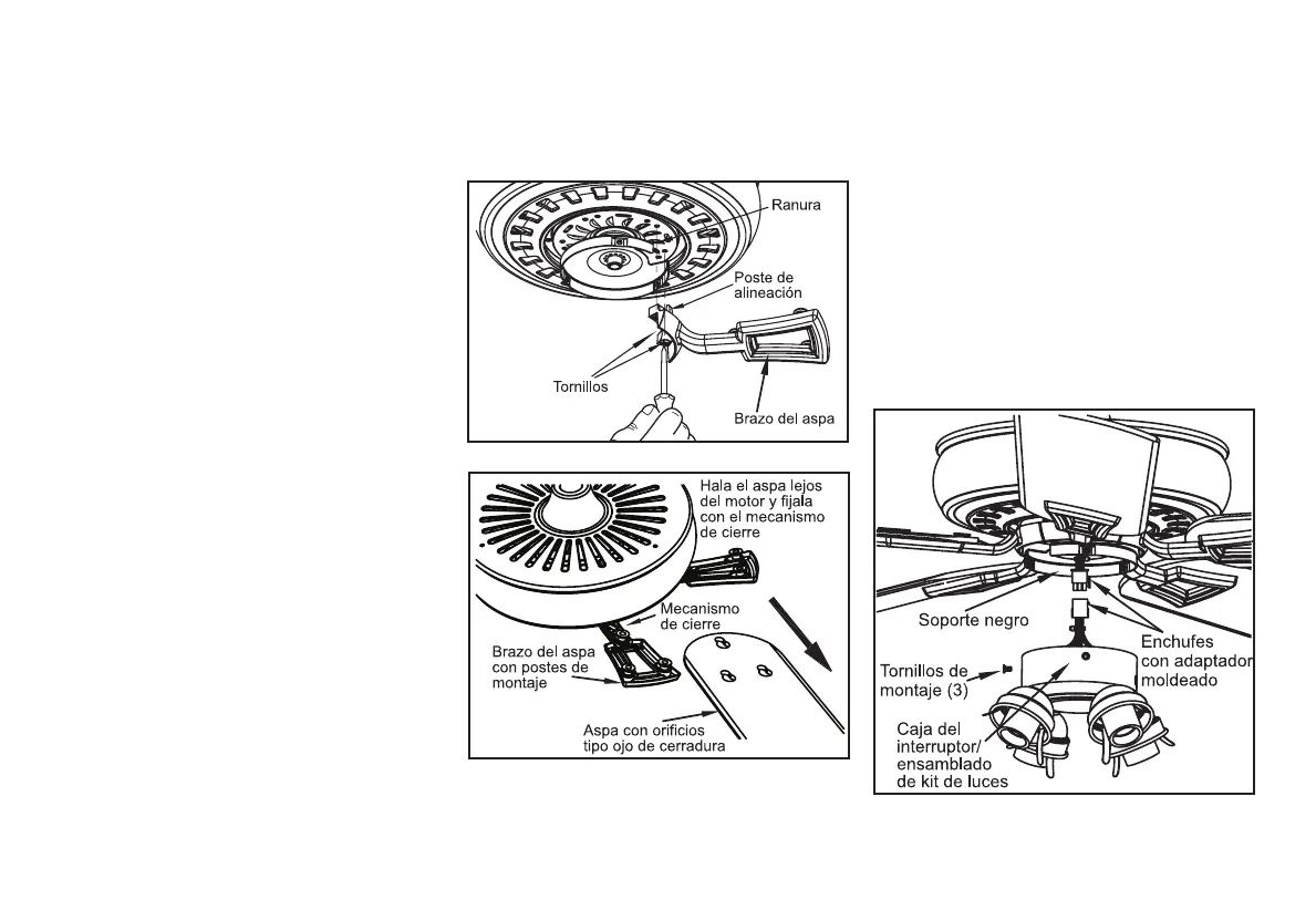 1. Ajusta el brazo del aspa al motor insertando