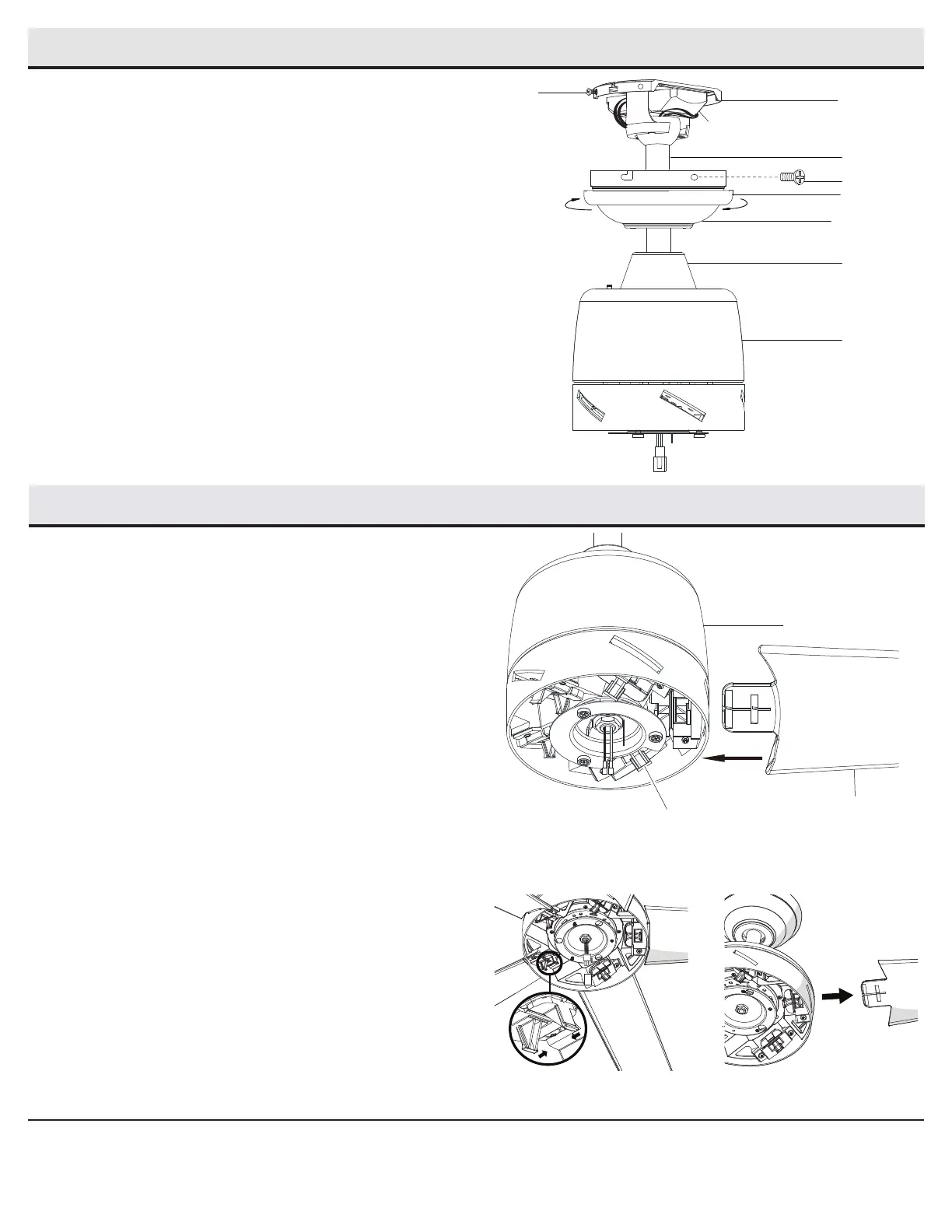 □ Attach a blade (F) to the fan motor housing (E) by inserting the