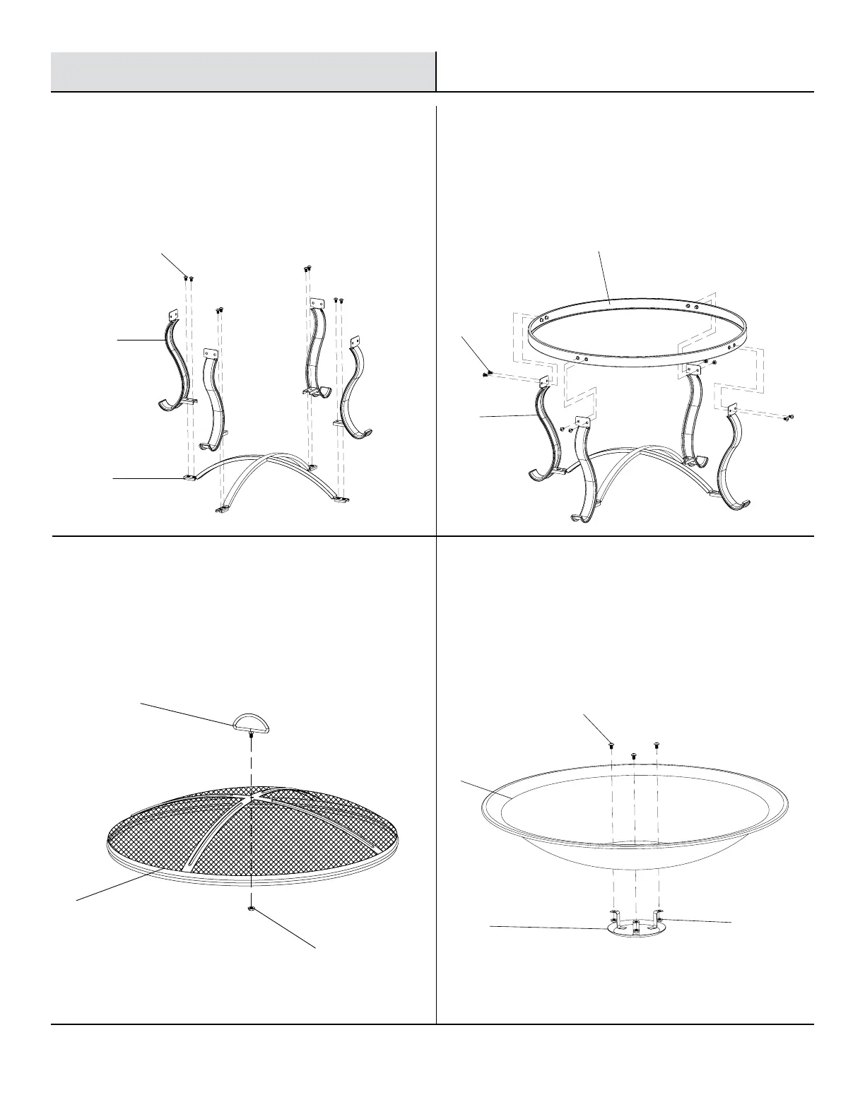 Attach the ash catcher (E) to the fire bowl (D) using three M5X10mm