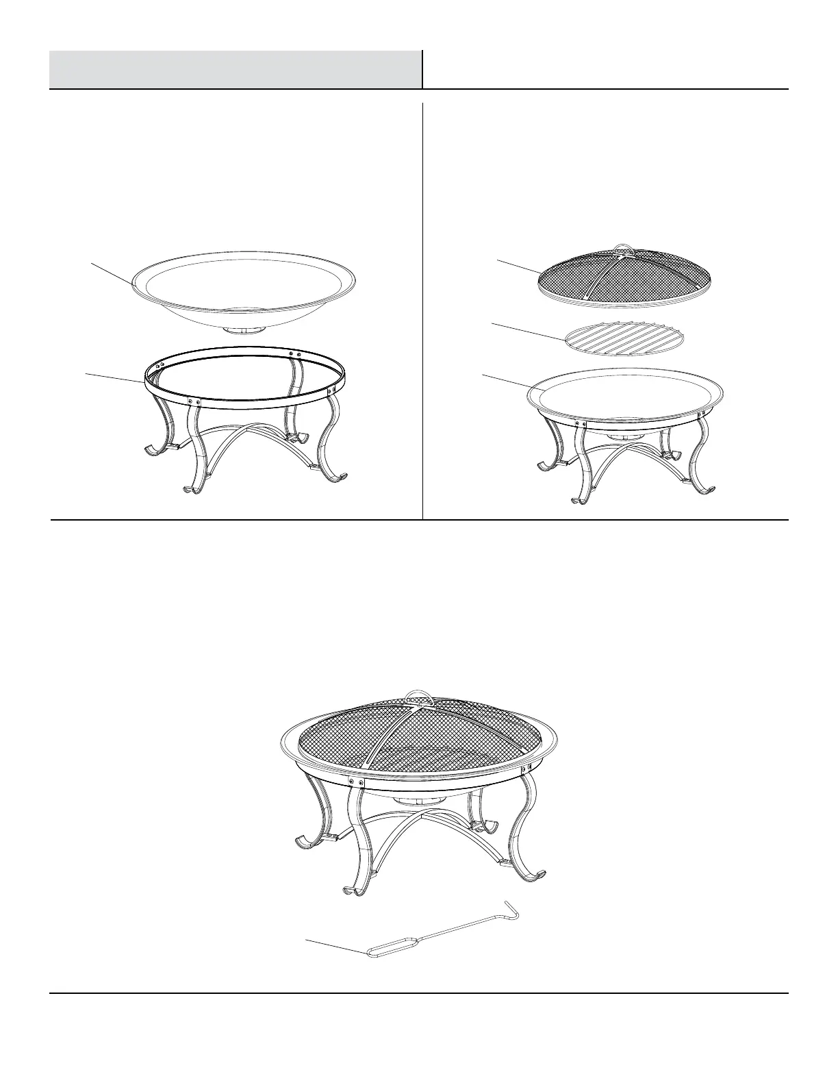 HAMPTON BAY SADLER - Attach Fire Bowl to Base; Assemble Firepit Components; Using the Poker