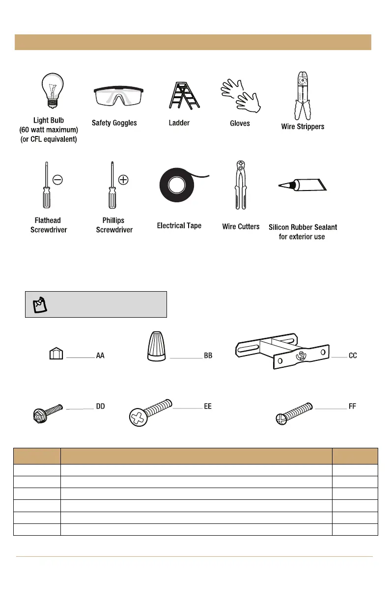 HAMPTON BAY SP-4248A - Pre-Installation; Tools Required; Hardware Included