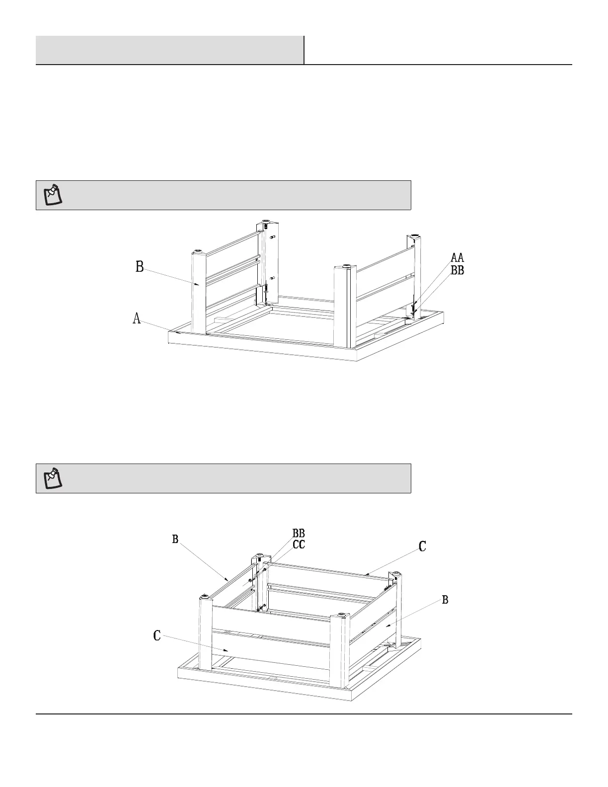 □ Attach legged panel(B)to the table top(A) with bolt(AA) & gasket(BB).