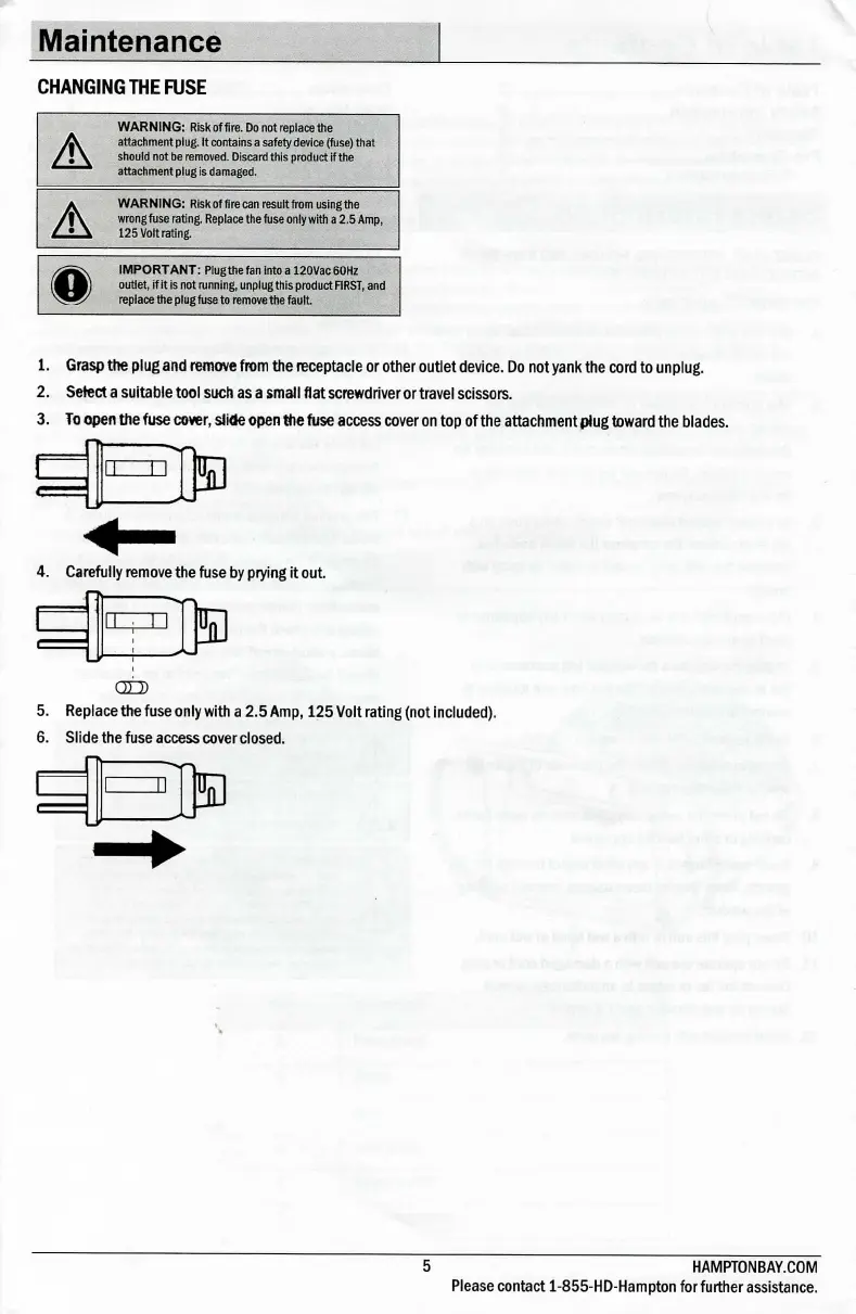 HAMPTON BAY TF-810S - Maintenance; Changing the Fuse