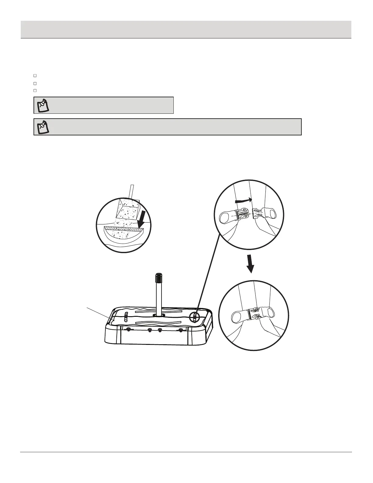 Pull to open the velcro pouch on the sand bag (M) and fill with sand.