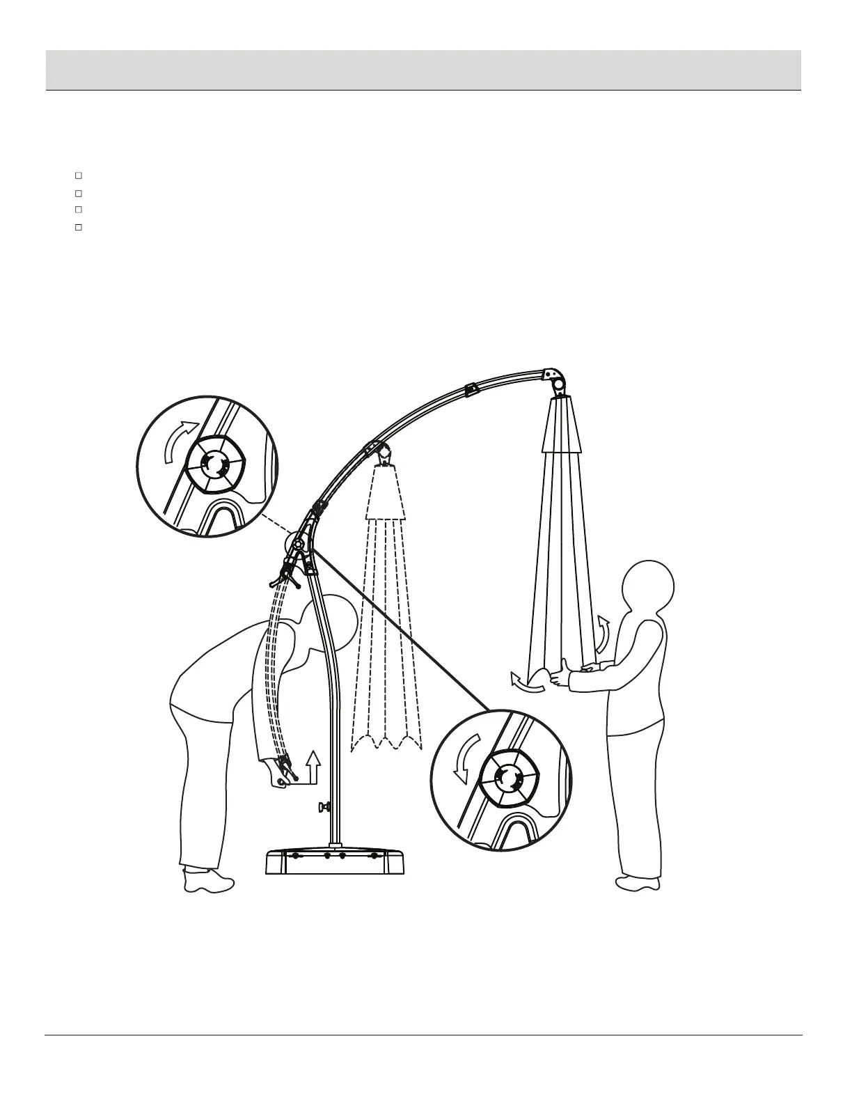 Loosen the knob on the umbrella shade as shown in figure 1 by turning it counterclockwise until it is fully loose.