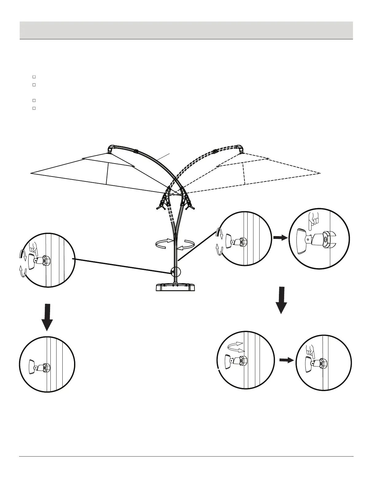 When the umbrella is at the desired position, rotate the knob 180 degrees clockwise as shown in figure 3.