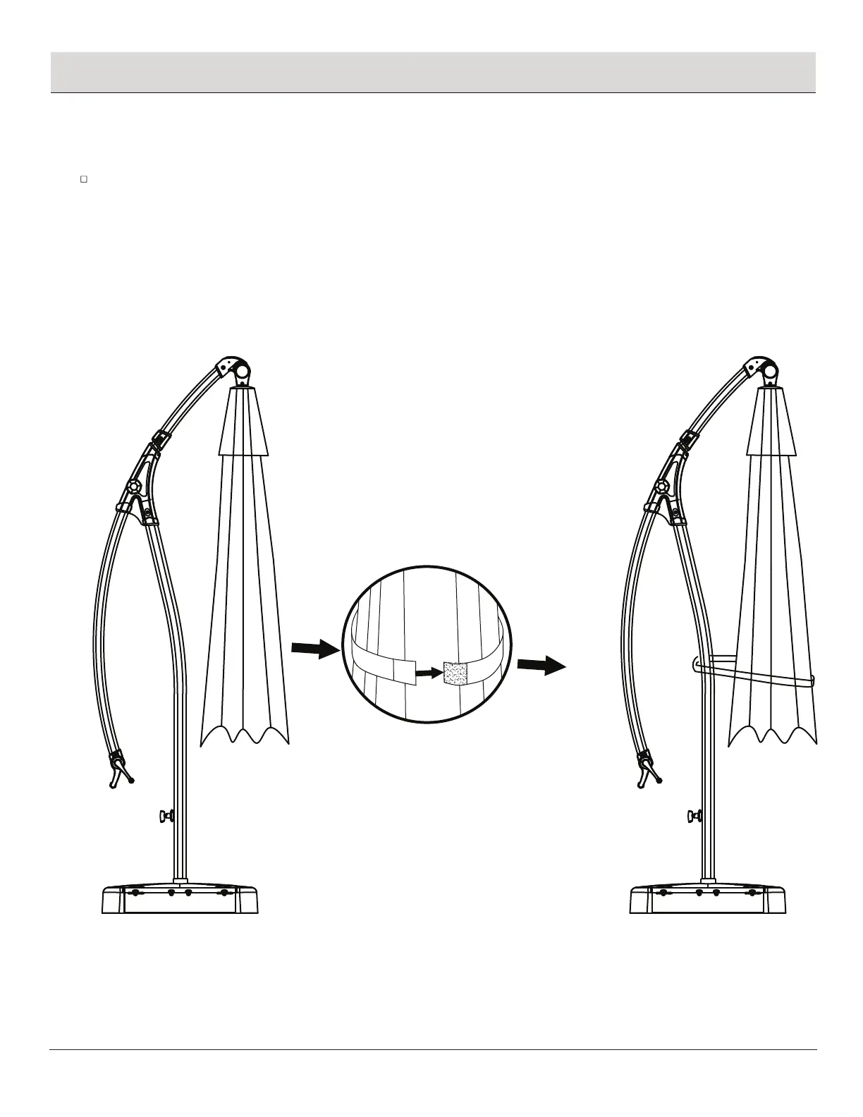 Tie the umbrella to the umbrella pole with the Velcro belt when not in use, as shown below.