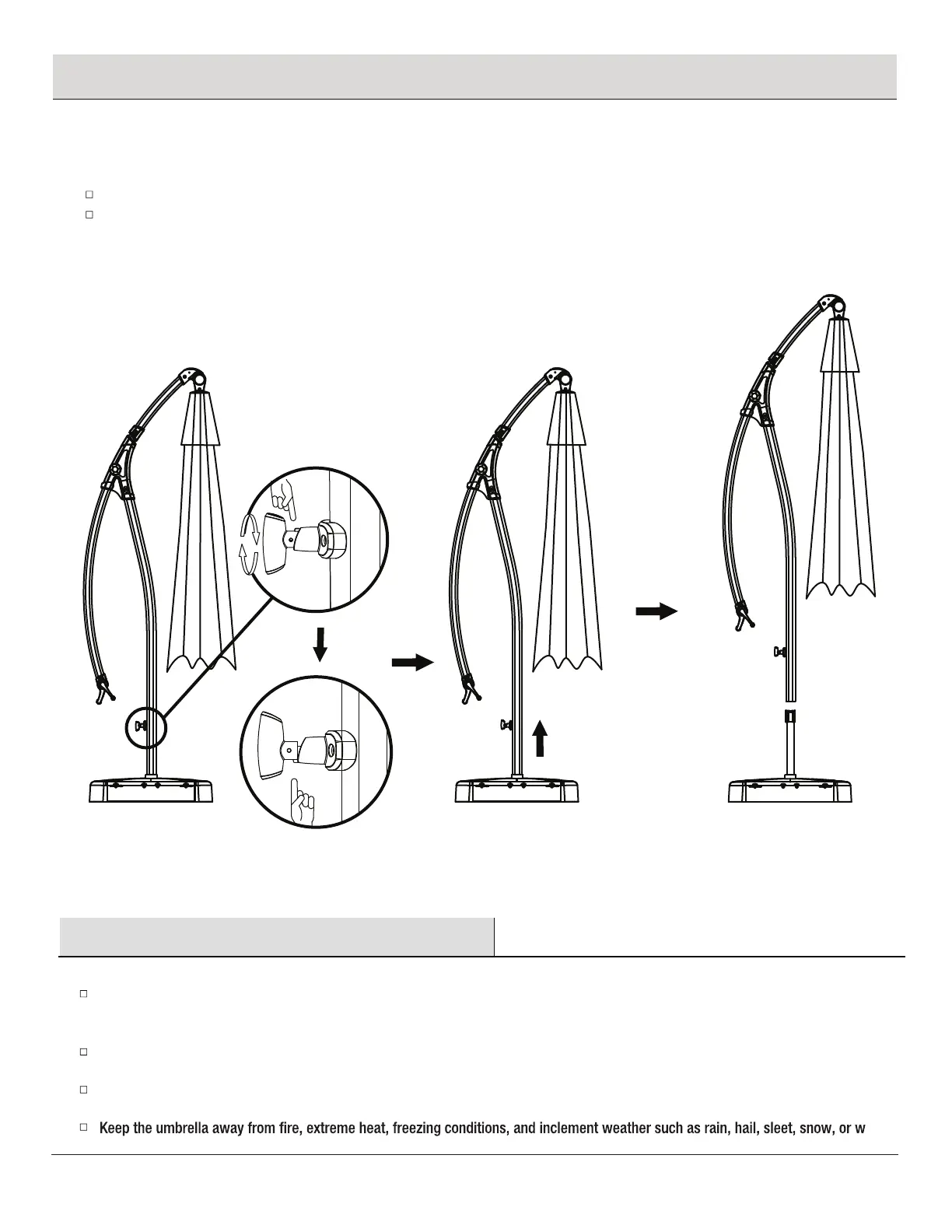 Pull out the umbrella shade and separate with umbrella base when not in use.