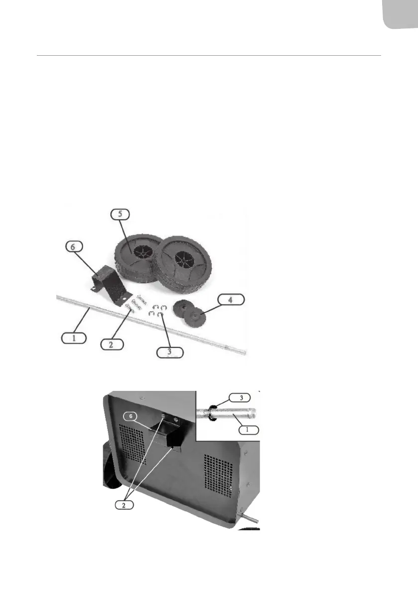 4. Nasuń jedno koło na oś, anastępnie nałóż drugi pierścień blokujący.