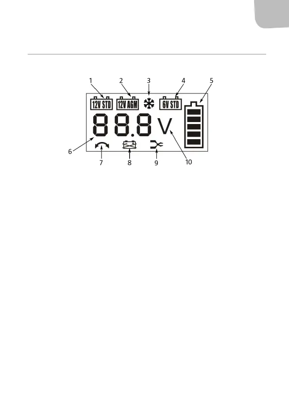 2. Ladestrøm 12 V AGM-batteri: 1A/2A/3A/4A. Ladestrømmen stilles inn