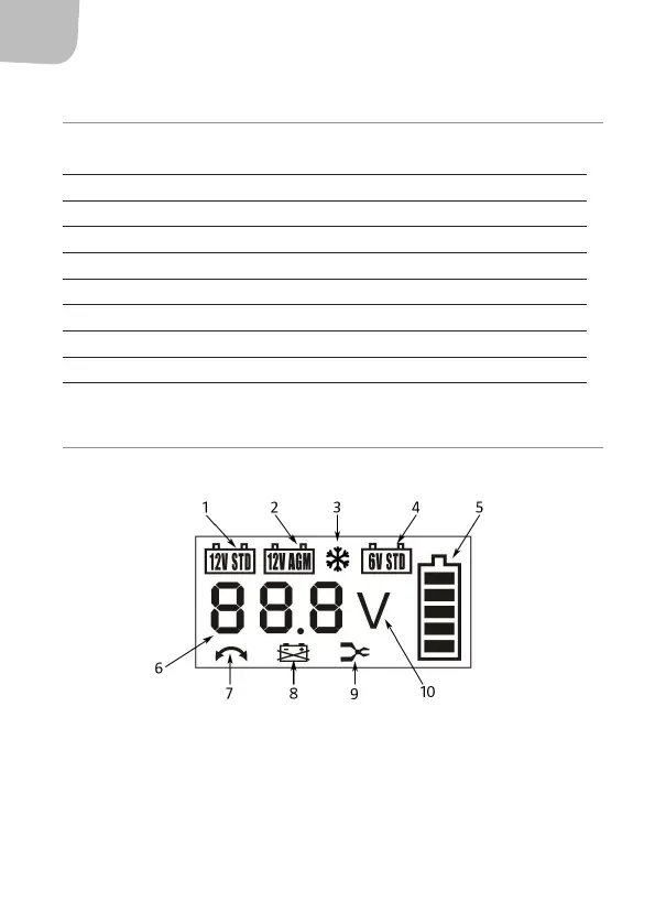 2. Laddström 12 V AGM-batteri: 1A/2A/3A/4A. Laddströmmen ställs in