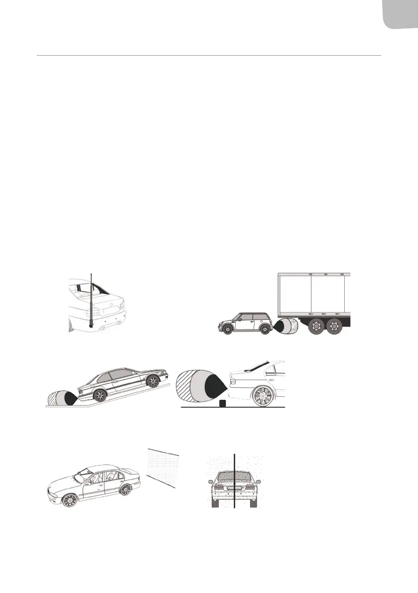 • Vær også oppmerksom på at systemet detekterer ulike gjenstander på ulik avstand� For vegger