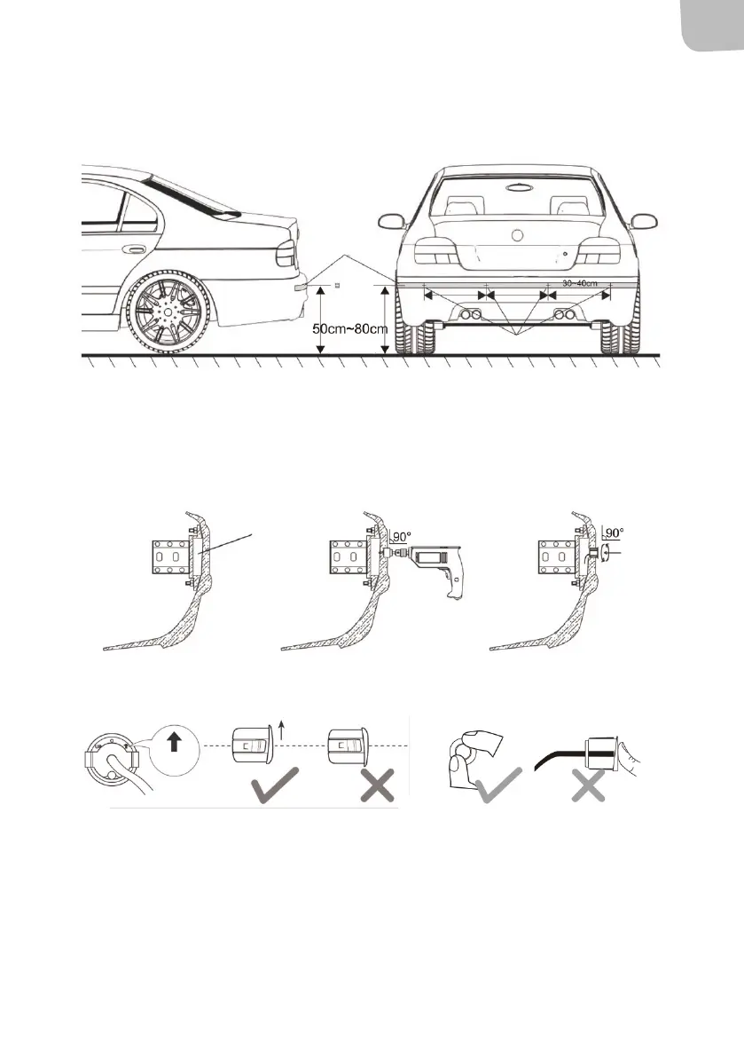 3� Upewnij się, że wmiejscach montażu czujników za zderzakiem nie ma żadnych przeszkód�