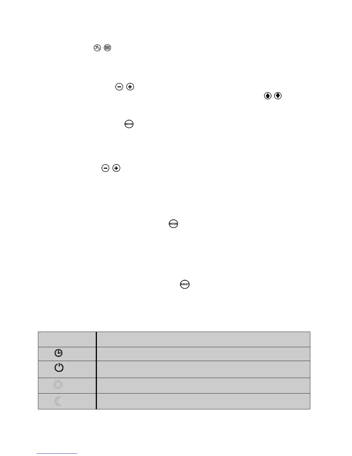 The operating modes are selected by pressing button .