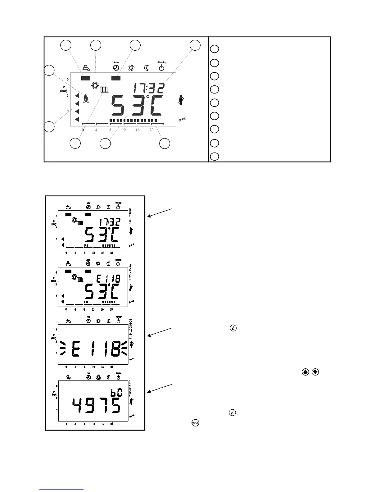 Press the Info button for the display of the error code