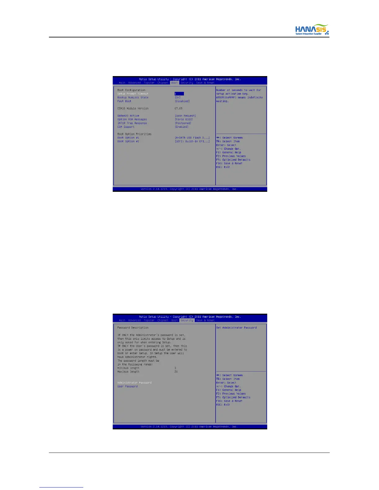In this section, you may set, change or clear the supervisor/user password for the system.