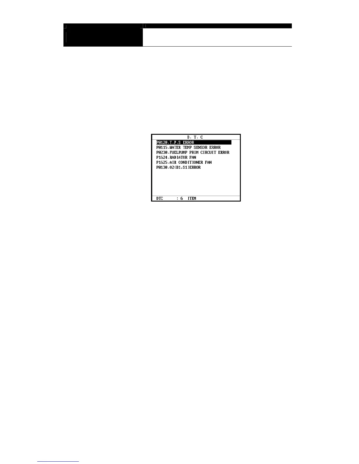 c Press the [2] key then the list of DTC(s) will appear as below: