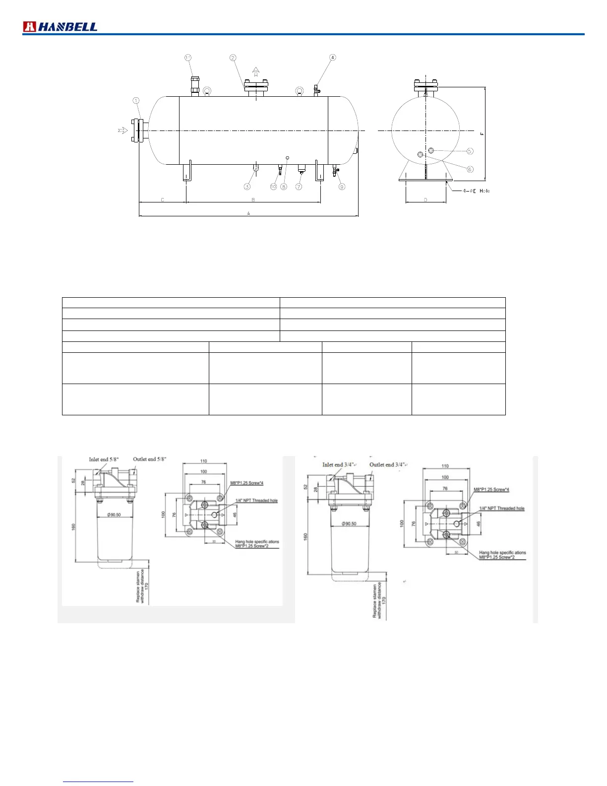 *Working Pressure: 40 bar (the weight is not including element)