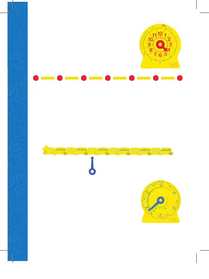 manecilla azul de los minutos bajo el 0. Primero, deja que los niños