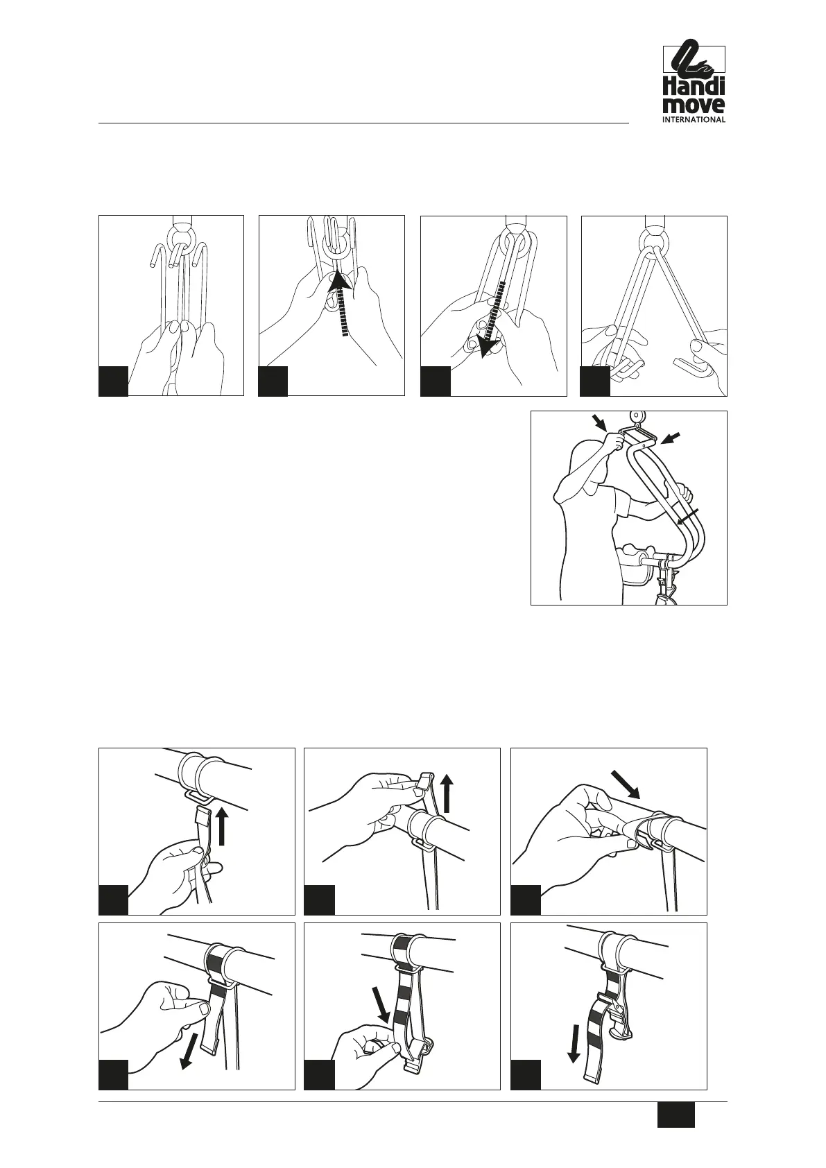 step 1. Clip the attachment hooks for the body support into the swivel hook.