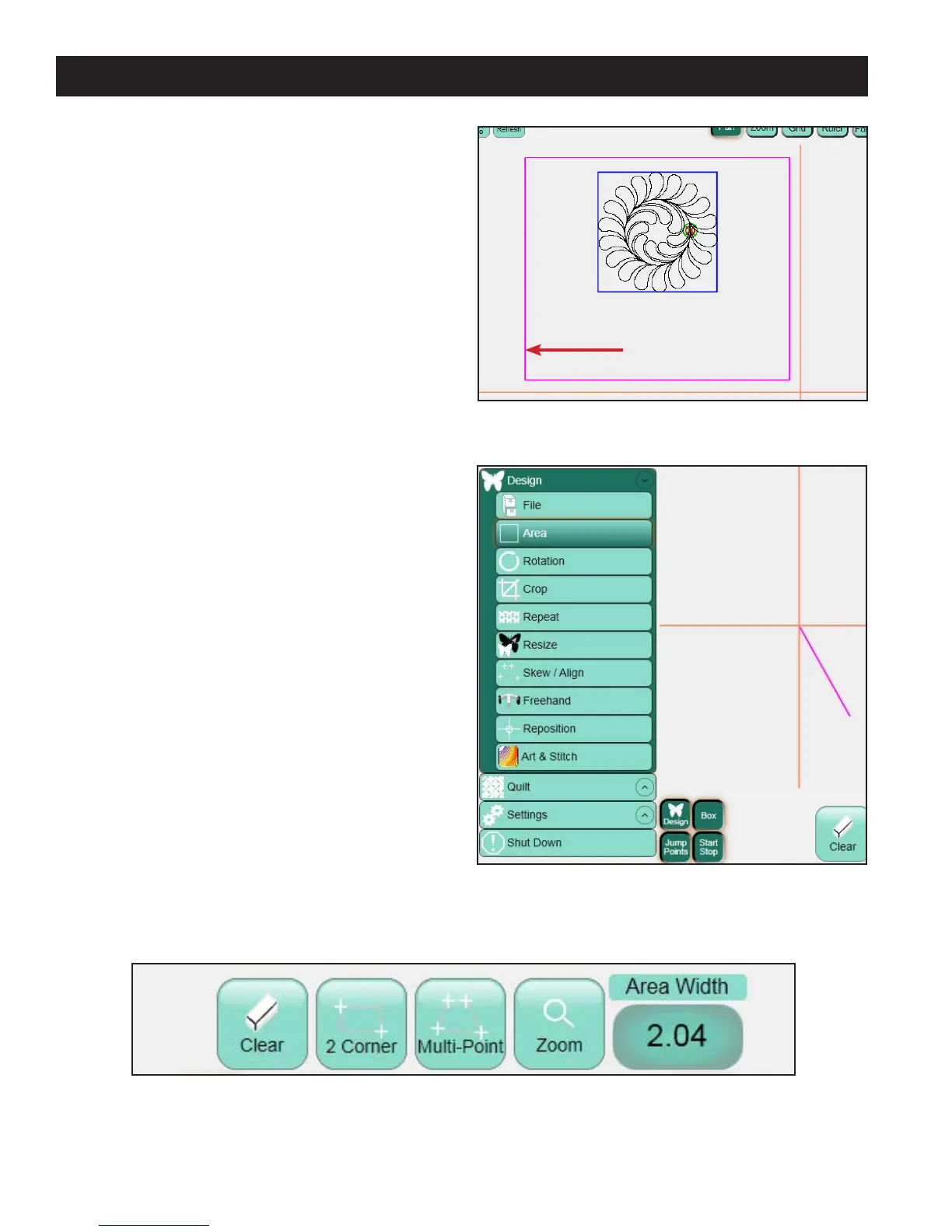 A quilting Area is a portion of the HQ Pro-Stitcher