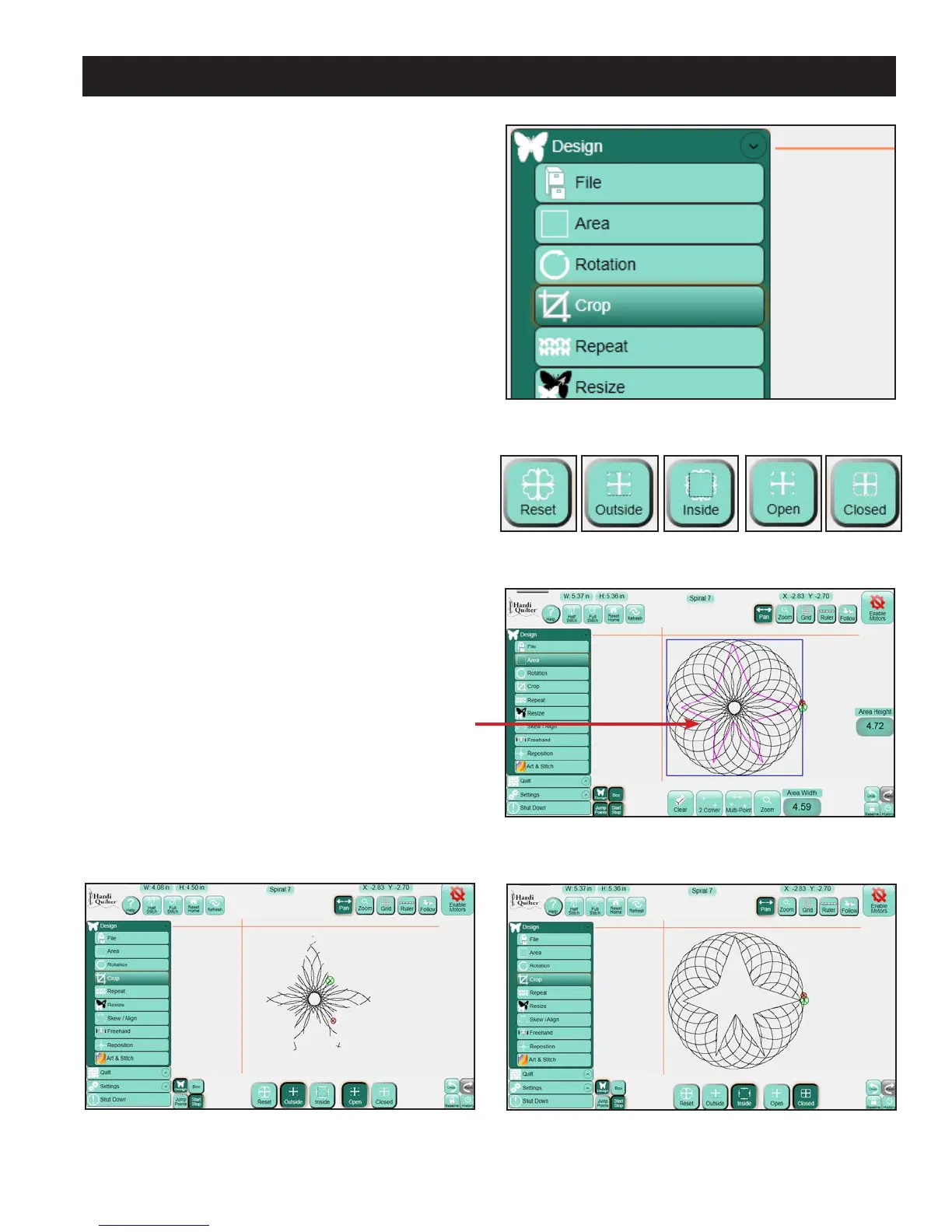 Select the Design menu and press the Crop sub-