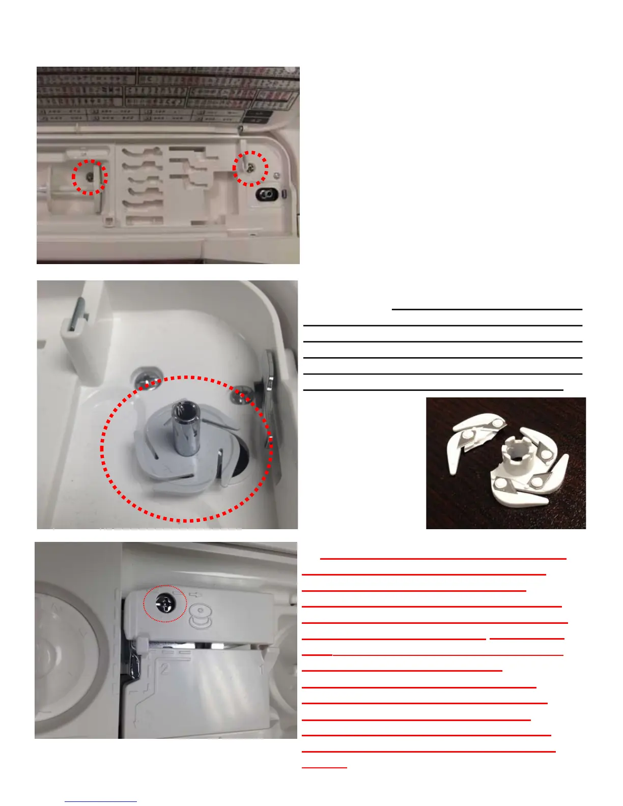 horizontal spool pin. Remove the screws