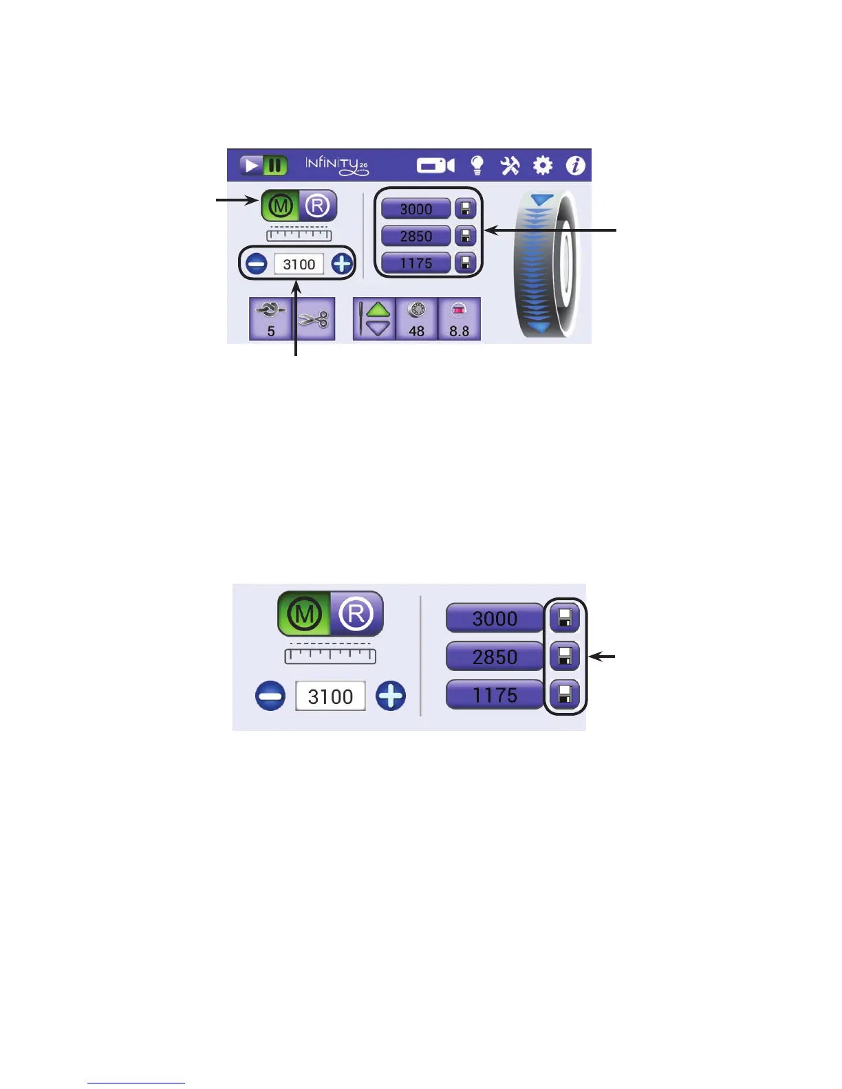 (SPM), that are saved for quick access from the Main screen. Aer you set the speeds, you can choose one