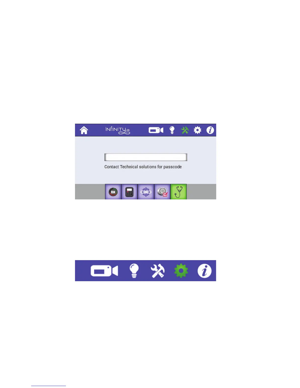 To open the machine sengs, touch the Sengs icon in the toolbar. Aer selecng it, the icon turns green.