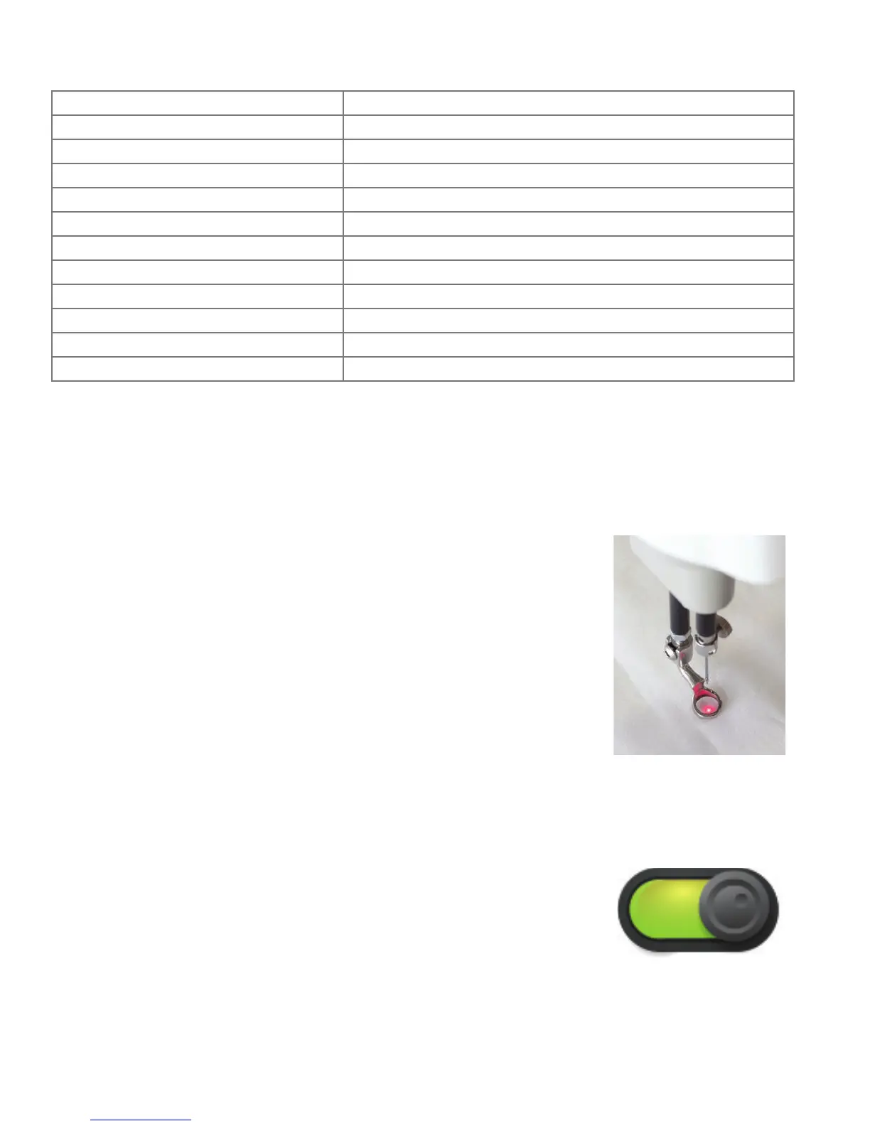 Needle Up/Down Performs a half s tch by cycling the needle up or down