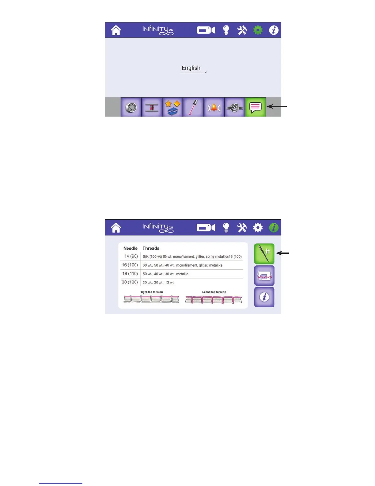 informaon about threading the Innity, see Threading the Machine i n t h e Using Your Machine secon of